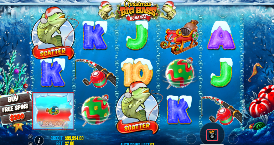 I’ve put Christmas Big Bass Bonanza through plenty of testing, and it delivers pretty much what you would expect. It is a solid festive reskin of the original Big Bass Bonanza, keeping the same core mechanics while dressing them up with a Christmas theme. The North Pole backdrop and cheerful fish symbols add genuine seasonal charm, and the sound design does a good job of creating a cosy Christmas vibe without becoming annoying during longer play sessions.